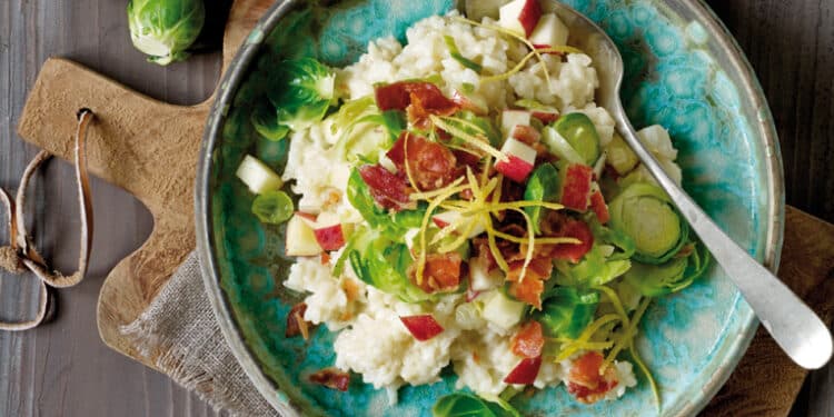 Med denne variant, med bacon og æble- rosenkålstopping kan du give din risotto et umiskendeligt nordisk tvist