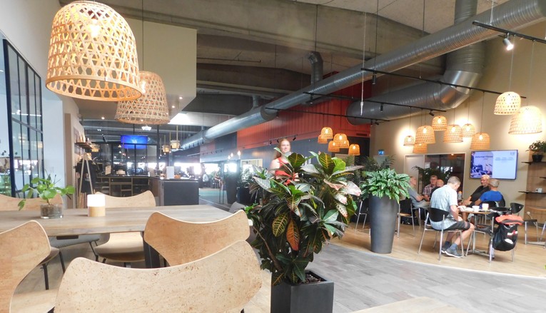 Og det må man sige, at de er lykkedes med. Der er hyggelige sociale zoner, sofaer og god plads til samvær, hvor de medlemmer, der bruger længere tid i centeret, kan kombinere deres træning med fællesskab – eller snakke sammen to og to. Den daglige kop kaffe er en naturlig del af oplevelsen – faktisk serveres der omkring 100.000 kopper kaffe årligt her på stedet. Lars har endda fået produceret stedets helt unikke kaffekop, der er miljøvenlig og har erstattet de kønsløse engangsbægre.